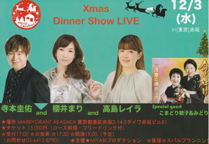 令和7年12月3日(水)Xmas Dinner Show LIVE in 東京赤坂