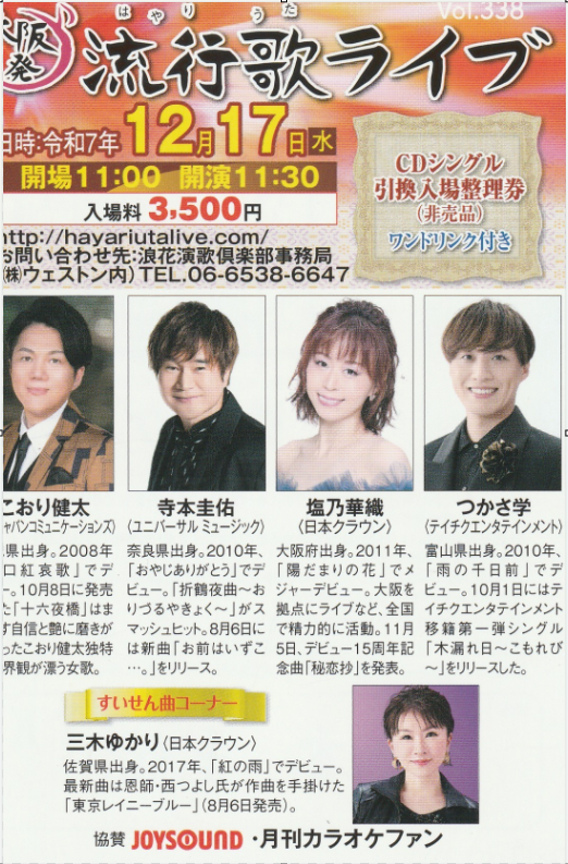 令和7年12月17日(水)大阪発流行歌ライブ vol.338