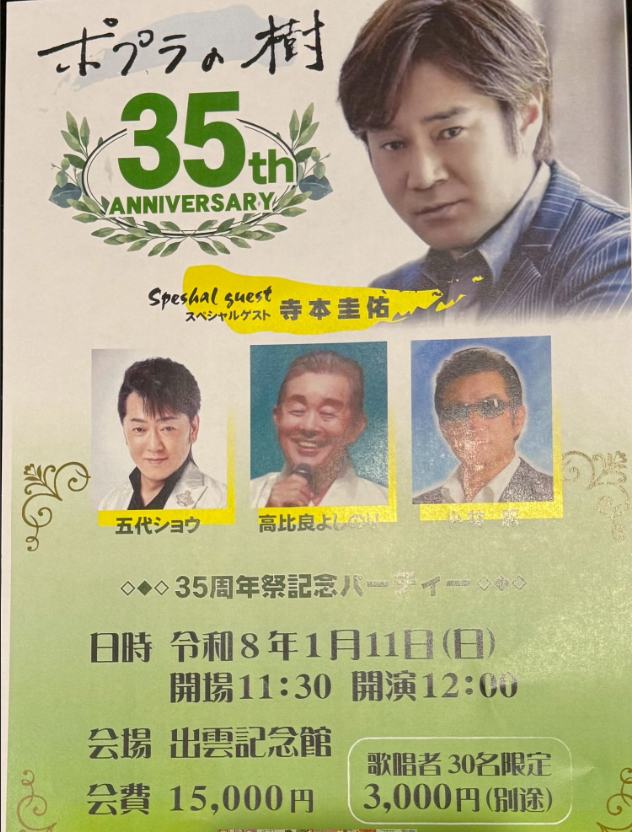 令和8年1月11日(日)ポプラの樹35th記念パーティ