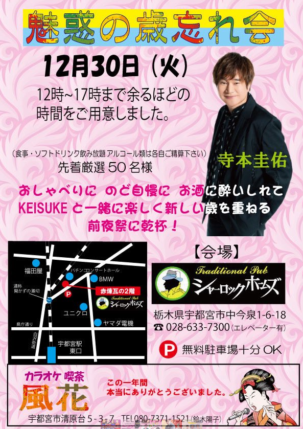 - 日時;2025年12月3日(水) 受付17:00/お食事17:30/開演19:00(予定)