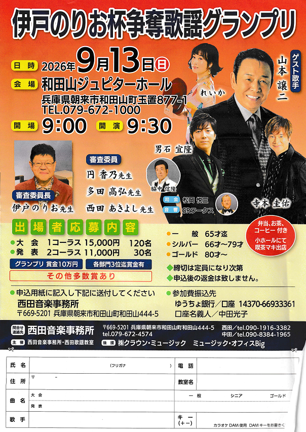 令和8年9月13日(日)伊戸のりお杯争奪歌謡グランプリ