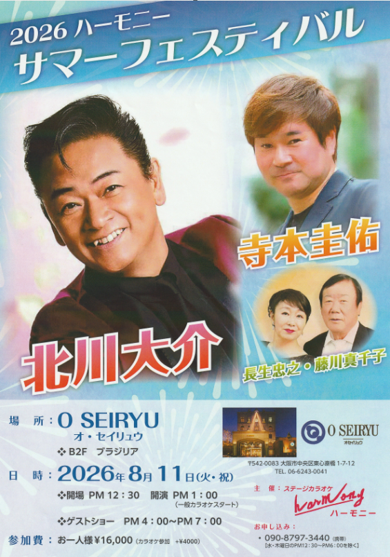 - 日時;2026年8月11日(火・祝) 開場12:30/開演13:00/ゲストショー16:00~