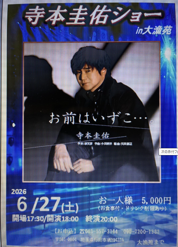 令和8年6月27日(土) 寺本圭佑ショーin大漁苑