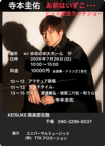 令和8年4月29日(水祝) 寺本圭佑2026 Springパーティ