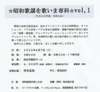 令和8年6月7日(日) 昭和歌謡を歌いま専科 VOL.1